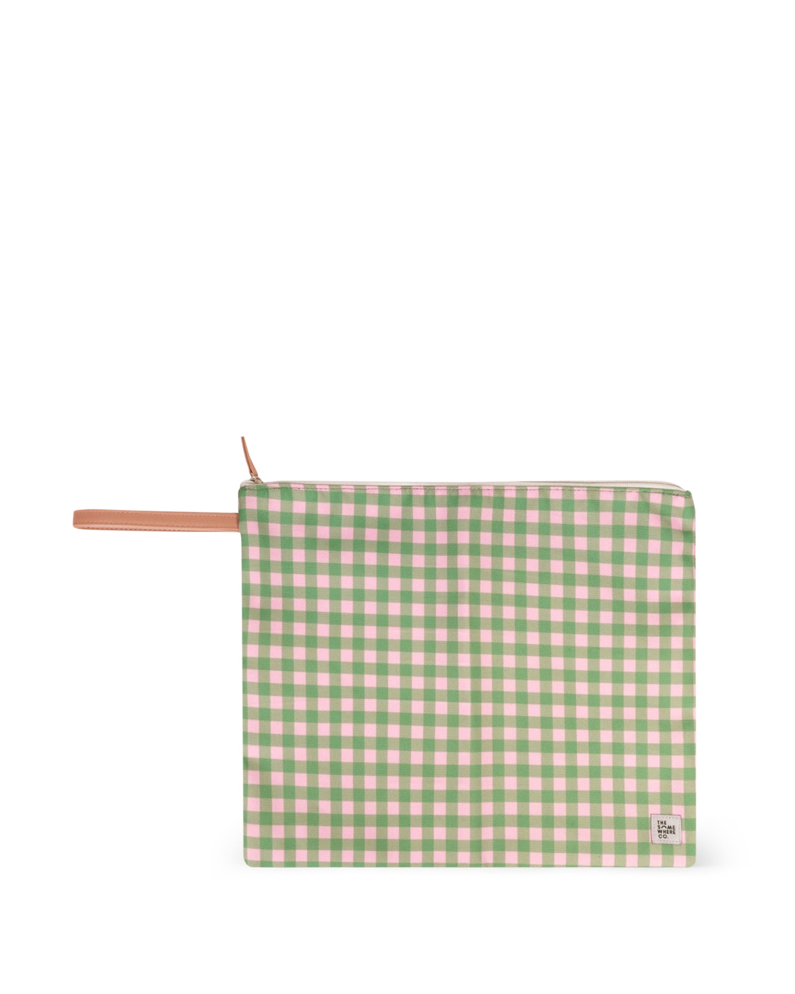 • Zip closure with vegan leather zip pull