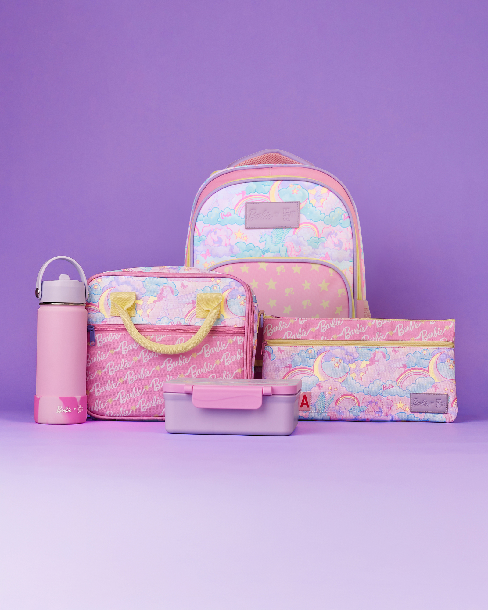 Get ready for adventure-packed days with the Barbie Unicorn Fantasy Explorer School Bundle. The ultimate pack for every little explorer's journey through kindy, school, and all the magical adventures in between! Get ready for the day with the New Mini Explorer Backpack, crafted for daily activities in and out of the classroom. Enjoy lunchtime with the whimsical Mini Lunch Case, 500ml water bottle and Large Silicone Bento Box, and add a touch of colour and creativity to lessons with the Mini Pencil Case.